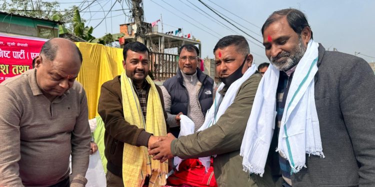 वीरगन्ज, १७ माघ । वीरगन्ज महानगरपालिका वडा नम्बर १२ मा शनिबार नेकपा (एमाले) को पार्टी प्रवेश कार्यक्रम सम्पन्न भएको छ। एमालेले सञ्चालन गरिरहेको संगठन विस्तार तथा जनसमर्थन सुदृढीकरण अभियानअन्तर्गत आयोजित कार्यक्रममा जनता समाजवादी पार्टी (जसपा) का केन्द्रीय सदस्य नेक महमद अन्सारी सहित विभिन्न नेता–कार्यकर्ता एमालेमा प्रवेश गरेका छन्।