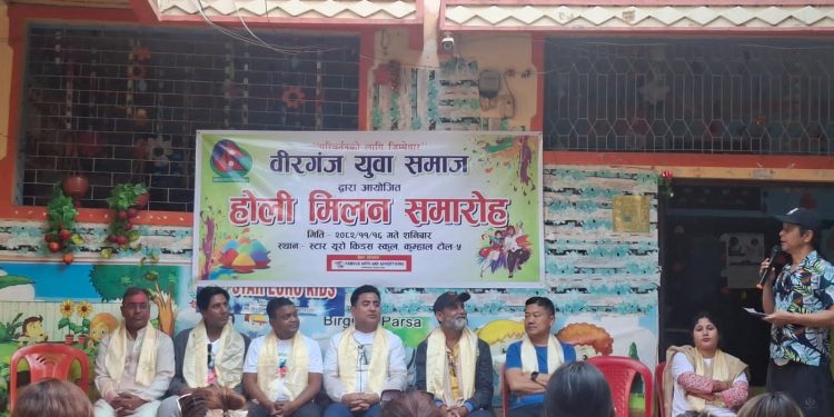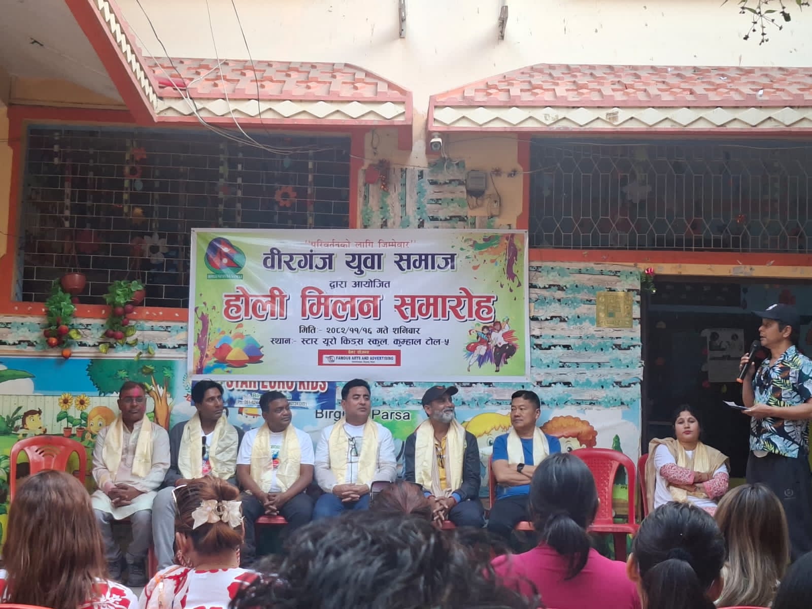 बिरगंज युवा समाज ले होली पर्वको पूर्वसन्ध्यामा शनिबार साँझ कुम्हालटोल स्थित स्टार युरो किड्स स्कुल को प्राङ्गणमा होली मिलन कार्यक्रम हर्षोल्लासका साथ सभ्य एवं भव्य रूपमा सम्पन्न गरेको छ।