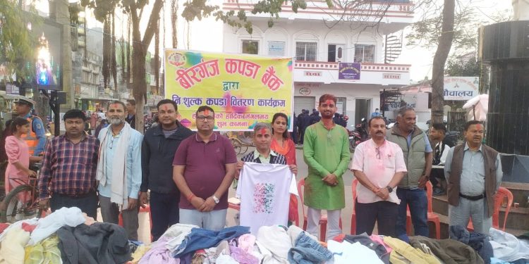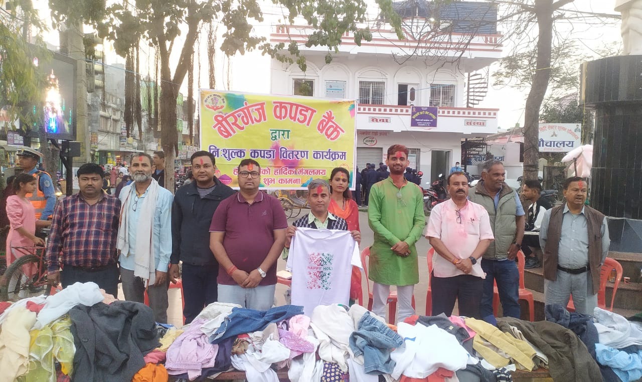 होलिको पूर्वसन्ध्यामा वीरगन्ज कपडा बैंकद्वारा घण्टाघरमा ८ सय थान निःशुल्क कपडा वितरण
