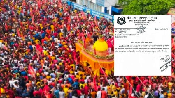 बुधवार वीरगन्ज महानगरपालिका नगरकार्यपालिकाको कार्यालयद्वारा जारी सूचनामा, रथ यात्राको दिन विद्यार्थीको सुरक्षा र सहजीकरणका लागि पठनपाठन स्थगित गर्ने निर्णय गरिएको उल्लेख गरिएको छ।