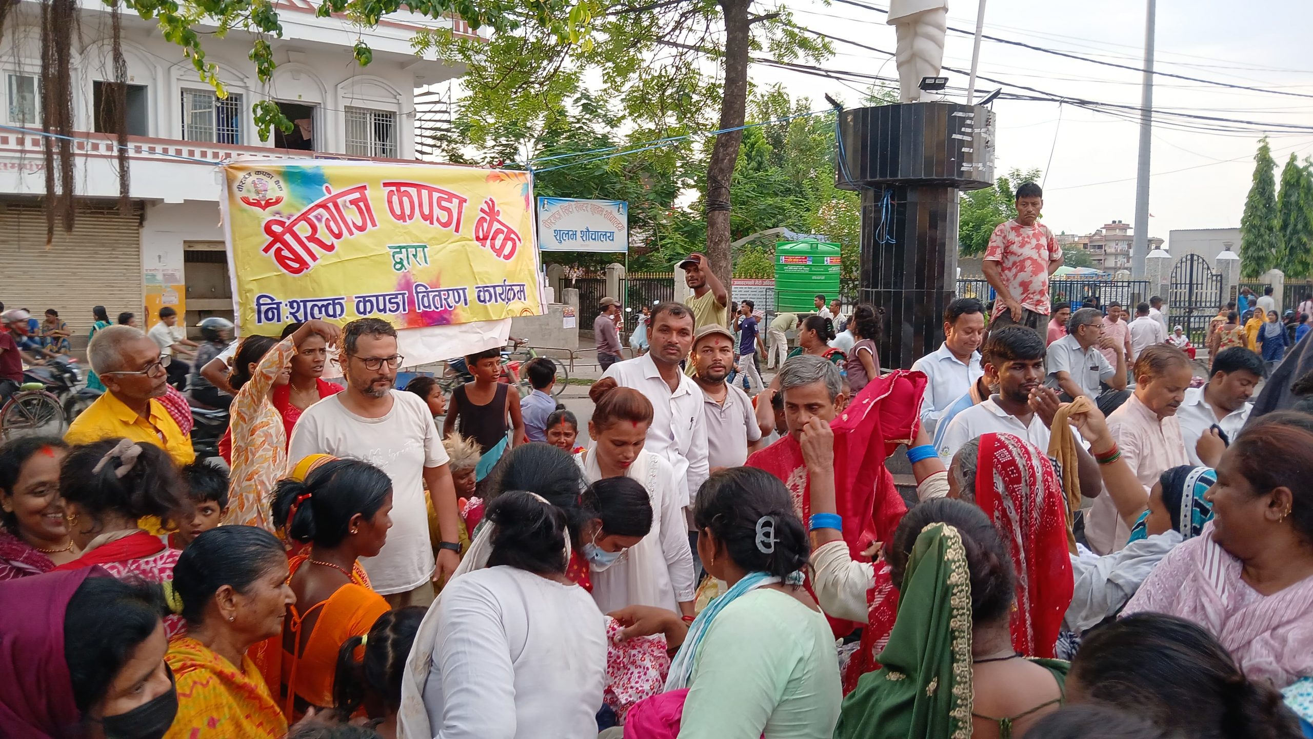 वीरगञ्ज । गरीब तथा असहाय वर्गलाई लक्षित गर्दै वीरगञ्ज कपडा बैंकले शुक्रबार घण्टाघरमा आयोजना गरेको विशेष कार्यक्रममार्फत करिब ६०० थान नि:शुल्क कपडा वितरण गरेको छ। नयाँ र प्रयोगयोग्य पुराना कपडाहरू वितरण गर्दै बैंकले मानव सेवा र सामाजिक उत्तरदायित्वको उदाहरण प्रस्तुत गरेको छ।