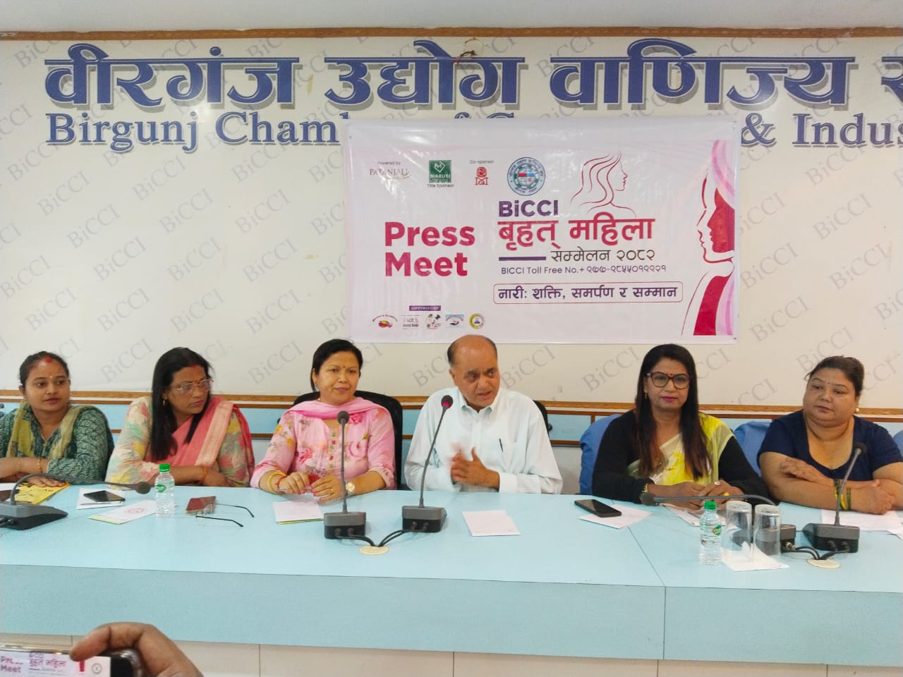 वीरगञ्ज उद्योग वाणिज्य सङ्घको महिला उद्यमशीलता विकास समितिले आगामी भदौ १४ गते (शनिवार) भव्य रूपमा “बृहत् महिला सम्मेलन २०८२” आयोजना गर्ने भएको छ। सम्मेलनको मुख्य उद्देश्य पर्सा–बारा क्षेत्रका विभिन्न क्षेत्रहरूमा सक्रिय महिलाको सामाजिक पहिचान उजागर गर्ने रहेको आयोजक समितिले जनाएको छ।