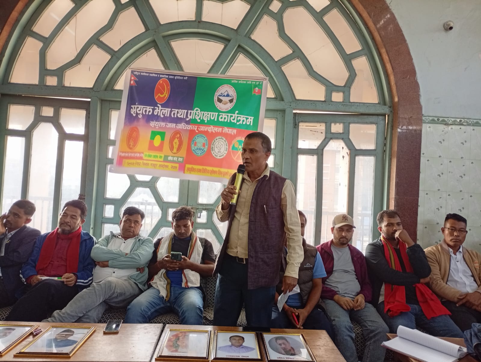 बीरगंज। संयुक्त जन अधिकार आन्दोलन नेपाल, मिटर ब्याज संघर्ष समिति, तथा लघुवित तथा वित्तीय शोषण विरुद्धको संघर्ष समिति नेपालको संयुक्त आयोजनामा आइतबार बीरगंजको आदर्शनगरस्थित रानीसती धर्मशालामा संयुक्त भेला तथा एकदिने प्रशिक्षण कार्यक्रम सम्पन्न भएको छ।
