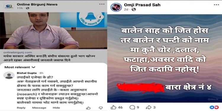 यस्तै, अर्का एक युवाले सामाजिक सञ्जालमा लेखेका छन्, “बालेन साहको जित होस्, तर बालेन र घण्टीको नाममा कुनै चोर, दलाल, फटाहा र अवसरवादीको जित कदापि नहोस्—बारा क्षेत्र नम्बर ४ मा।” उक्त अभिव्यक्तिले वैकल्पिक राजनीतिप्रति समर्थन रहे पनि, उम्मेदवारको पृष्ठभूमि, चरित्र र कार्ययोजनाप्रति गम्भीर प्रश्न उठाएको देखिन्छ।