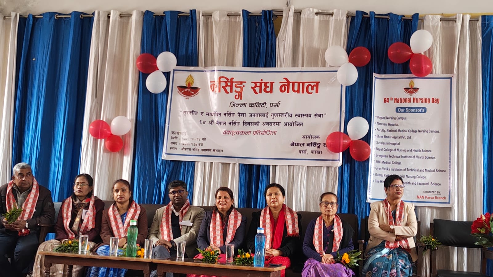 नेपाल नर्सिङ संघ, पर्सा शाखाद्वारा आयोजित ६४औँ राष्ट्रिय नर्स दिवसको अवसरमा वीरगञ्ज नर्सिङ क्याम्पसको सभाहलमा वक्तृत्वकला प्रतियोगिता सम्पन्न भएको छ।