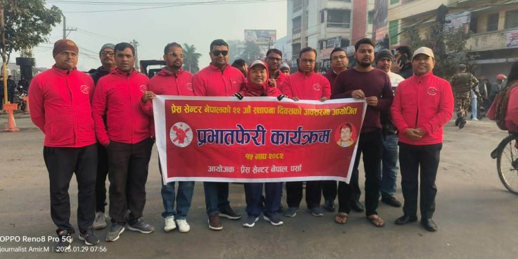 प्रेस सेन्टर नेपालको २२औँ स्थापना दिवसको अवसरमा वीरगञ्जमा प्रभात र्‍याली तथा रक्तदान कार्यक्रम सम्पन्न