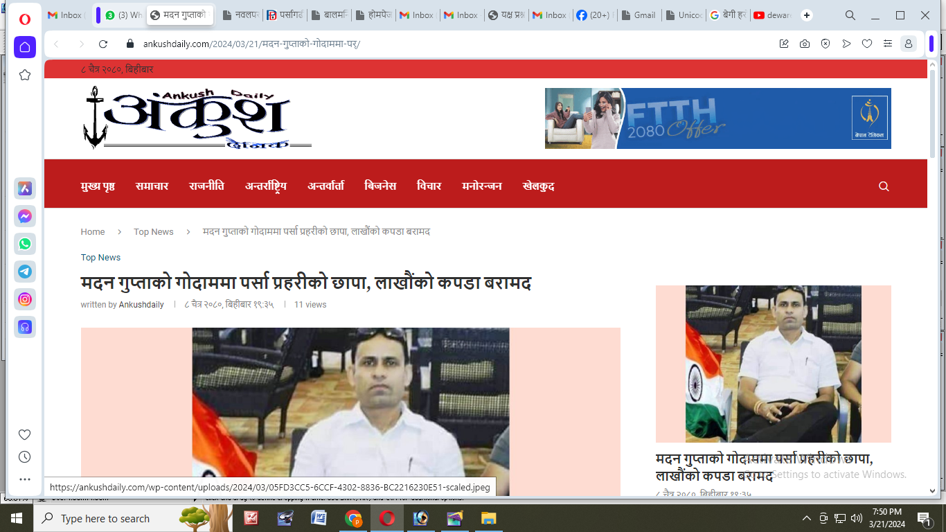 जिल्ला प्रहरी कार्यालय पर्साको एक टोलीले आज आदर्शनगर स्थित कुख्यात तस्कर मदन गुप्ता ऊर्फ रुन्चेले सञ्चालन गर्दै आएको जय माँ दुर्गा करियरको गोदामबाट छापा मारेर लाखौंको अबैध कपडा बरामद गरेको छ।